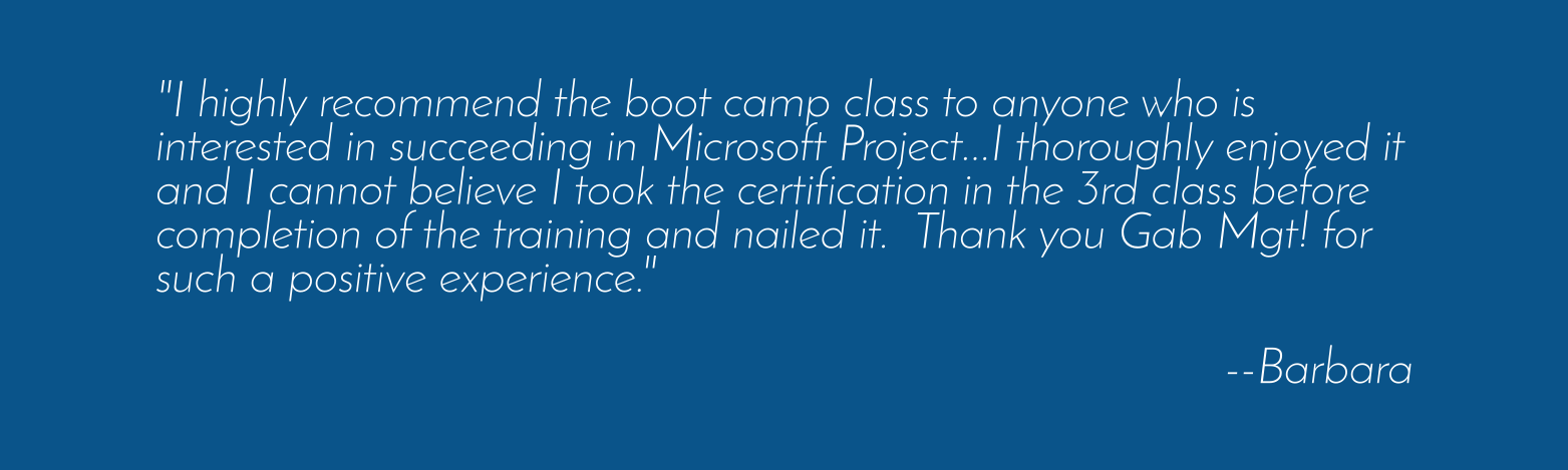 Invest in yourself by taking one of our training courses and watch your career soar. We begin by teaching the fundamentals of project management and scheduling and then we offer one-on-one help so that you look like a pro on your first day.